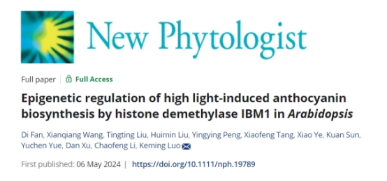近日,开云kaiyun网页版官网罗克明教授课题组在New Phytologist在线发表了题为Epigenetic regulation of high light-induced anthocyanin biosynthesis by histone demethylase IBM1 in Arabidopsis的研究论文,揭示了组蛋白去甲基化酶的IBM1在光诱导花青素合成中的表观遗传调控新机制,为完善对植物花青素合成精准适应环境光照条件机理的认识提供了新的层面。