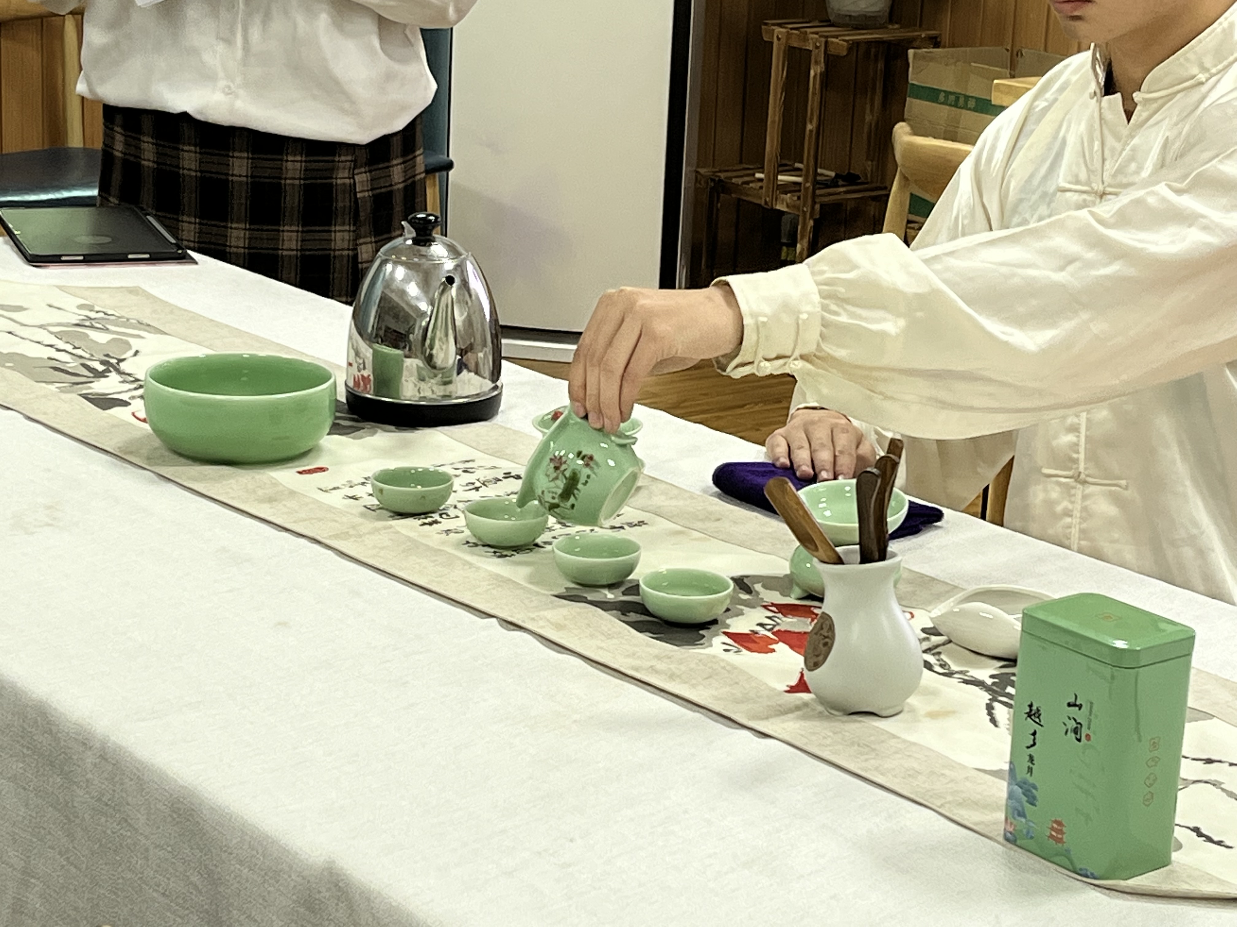 活动伊始,茶艺社的同学们向与会同志们展示了茶艺表演。行云流水间,茶香起伏时,支部成员亲身体验茶文化,对中华优秀传统茶文化的了解又再添一分,禅意的氛围为接下来的书籍分享带来了更好的沉浸体验。