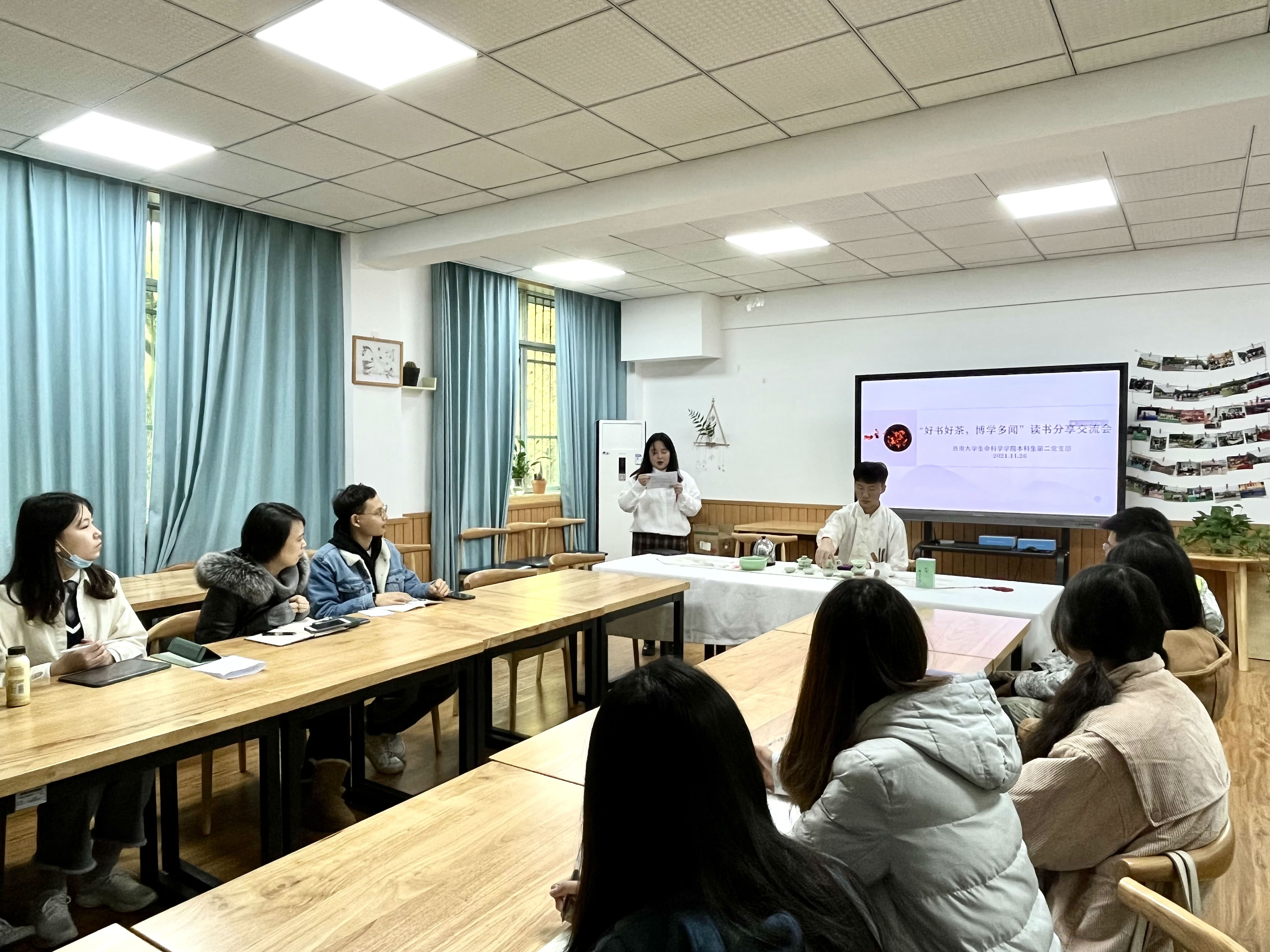 书山有路勤为径,本二茶香伴书声。为加强党支部成员之间的联系,培养支部党员读书情怀,11月26日,生命科学学院本科生第二党支部在学院223活动室顺利举办“好书好茶,博闻多学”读书分享交流会。学院党委副书记 本科生第二党支部书记石莹华同志、2021级本科生辅导员刘升乔同志出席本次活动,支部全体党员及部分积极分子代表们围坐一起,共议书章。活动由支部成员黄新宇同志主持。