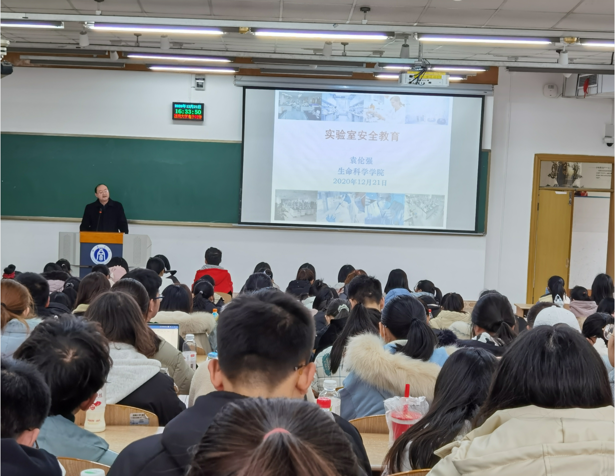 实验室安全教育是本科新生入学教育内容之一,旨在提高学生实验室安全防范意识,掌握实验室安全操作相关知识。 12月21日下午,学院在8教308开展了以实验室安全教育为主题的讲座,主讲人为学院袁伦强老师,2020级全体本科生参加了讲座。