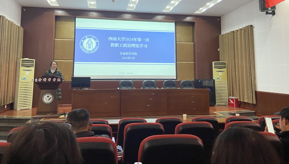 2024年1月5日,生命科学学院举行2024年第一次教职工政治理论学习,党委书记蒋寒主持政治理论学习会。党委副书记张颖领学国家主席习近平发表的二〇二四年新年贺词,以及中共中央总书记、国家主席、中央军委主席习近平在纪念毛泽东同志诞辰130周年座谈会上的讲话精神。